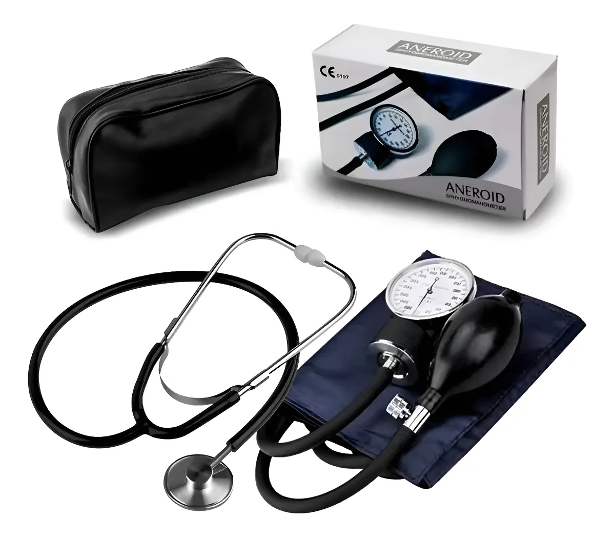 Kit Baumanometro Aneroide Manual Con Estetoscopio Y Maletin es Ideal que permite monitorear la presión arterial de los pacientes en la consulta médica o durante su estancia en el hospital.